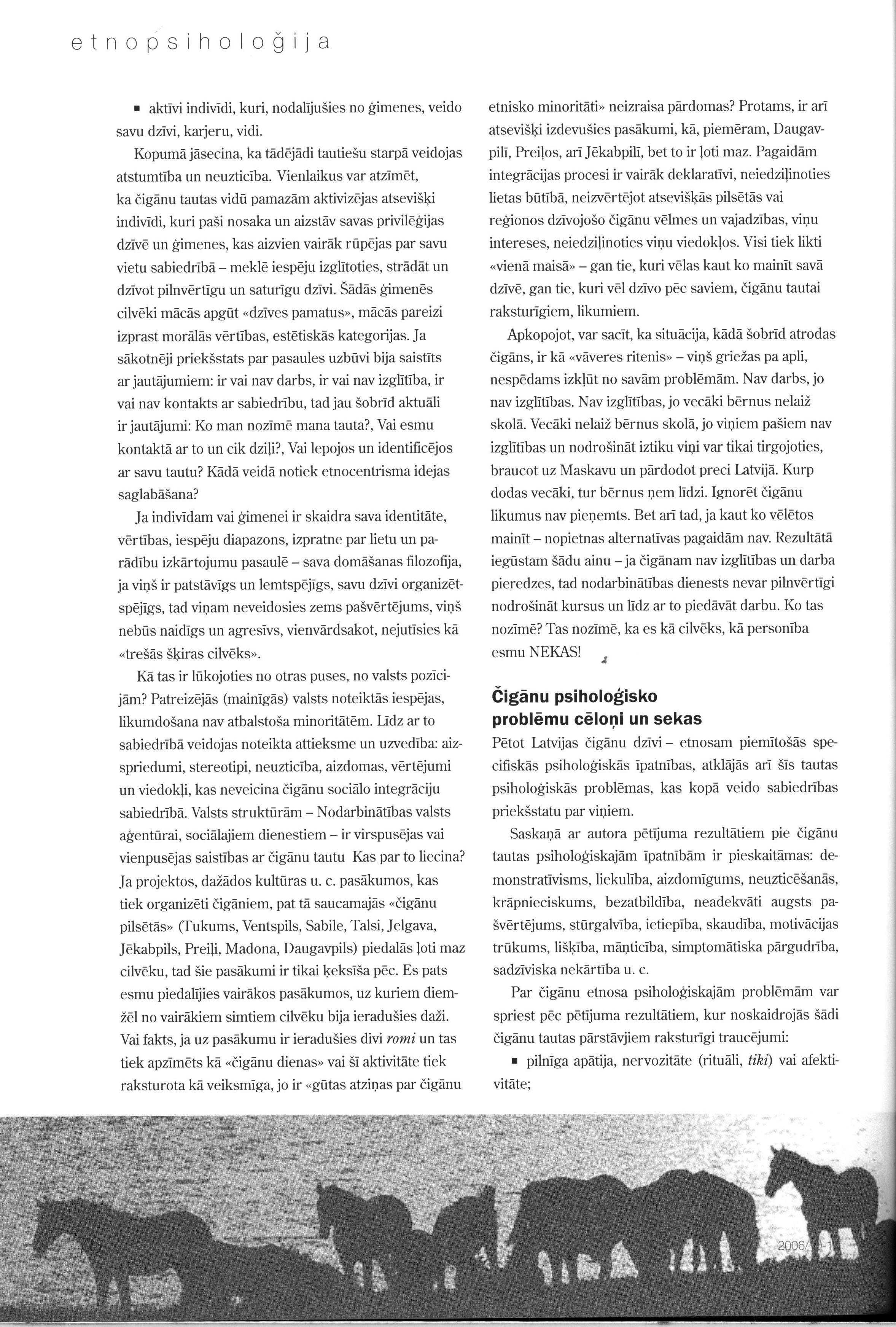 Roma ciešs no savām iekšējām (emocionālām, garīgām, psiholoģiskām) grūtībām, to visu pastiprina Latvijas valstī nenoregulētā politiskā, mediju telpa, sabiedrības dominējošā nostāja. Mazā etniskā minoritāte ir «saspiesta«, psiholoģiski novārdzināta, re-traumatizēta, «atkalināta publiski« bez reāla atbalsta un programmas izveides, bez dažādu speciālistu BEZ KRĪZES GRUPAS IZVEIDOŠANU un UZSTĀDĪJUMIEM no tiem, kuri bija atbildīgi TOBRĪD (2006) UN TAGAD (2024). Turpinās «saldināt un barot« sabiedrību ar kultūras, mākslas un daļrades« saldinātājiem« . Čigānu Krīzes situācija tiek «pasalaucīta« zem plašiem politiskiem, mazākumtautību vai maznodrošinātiem vislatvijas kopējām grūtībām.Čigānam Eiropā un Latvijā pēc definīcijas ir īpašs statuss un privilēģija atšķirībā no citām etniskām minoritātēm. Šo patiesību zina visi eksperti !