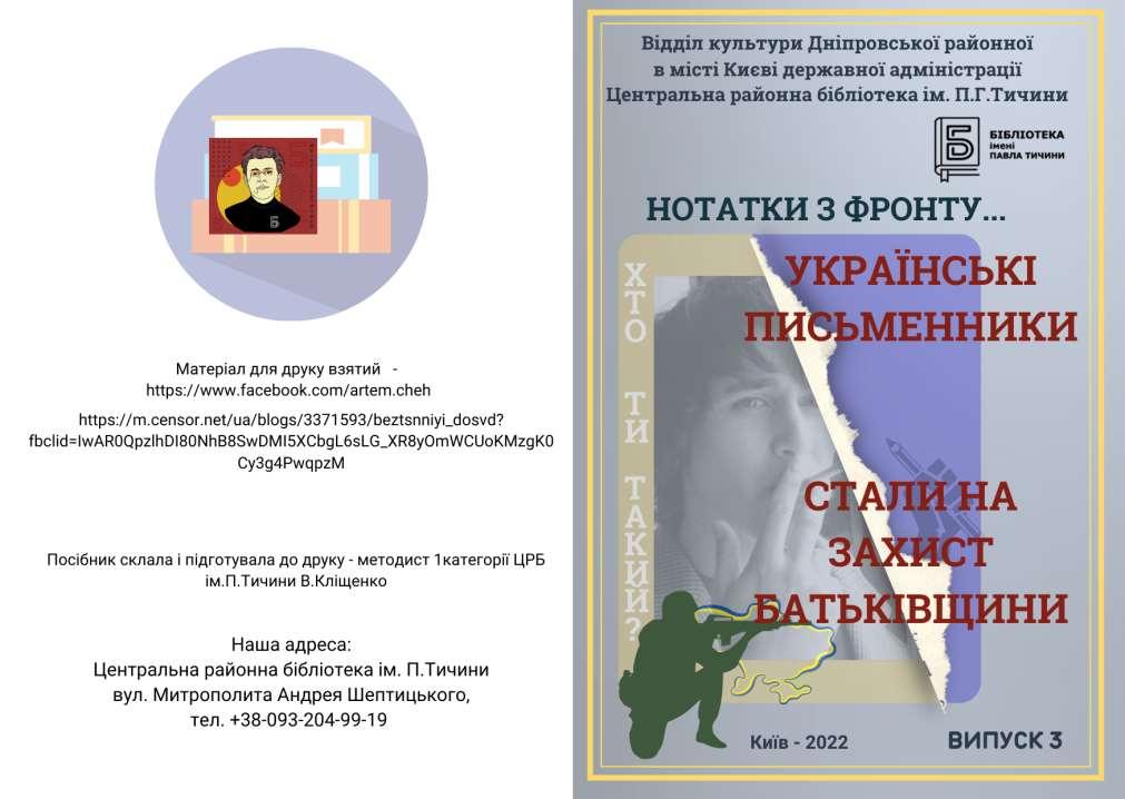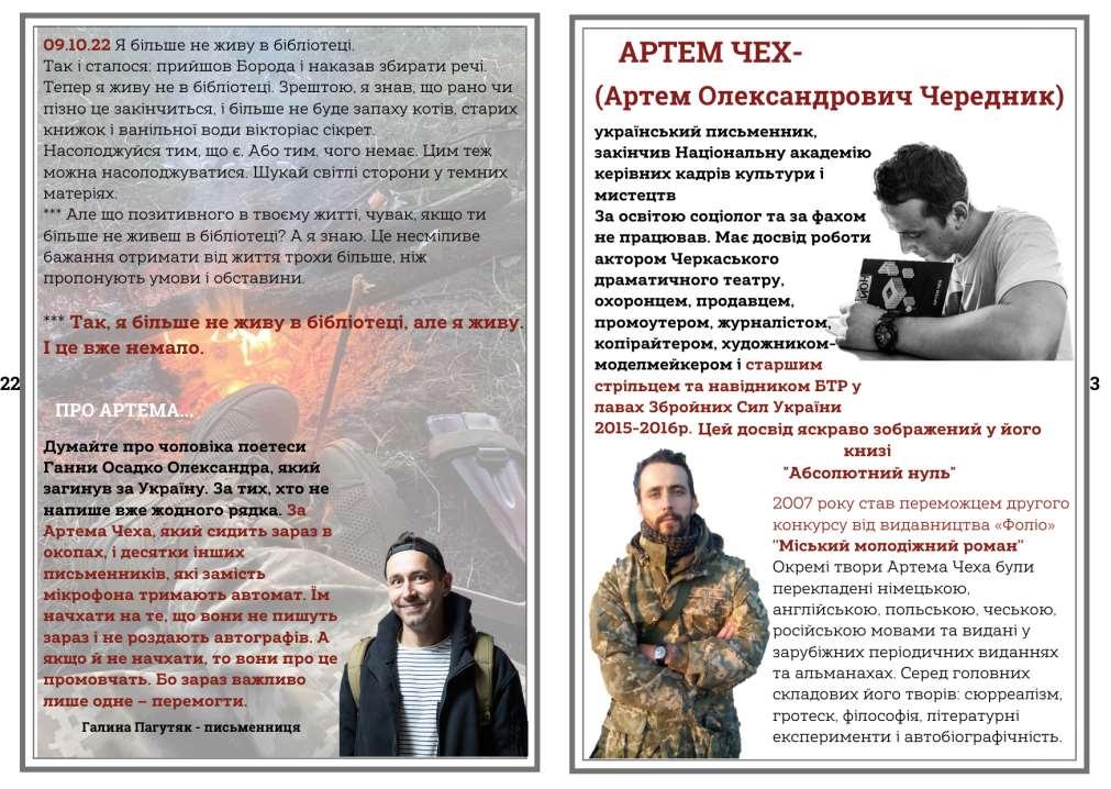 Українські письменники стали на захист Батьківщини. Нотатки з фронту... Артем Чех. Випуск 3 by Бібліотеки Району - Issuu