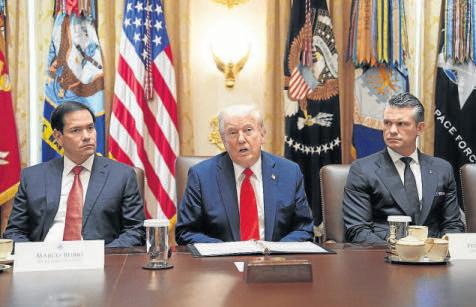 Trump, ayer en la reunión de su Gabinete con el secretario de Estado, Marco Rubio (izq.), y el secretario de Defensa, Pete Hegseth. LAPRESSE