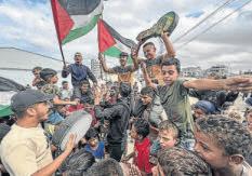 Celebraciones del alto el fuego ayer en Gaza. EP