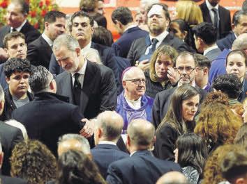 Al término del acto, que duró casi dos horas, Felipe VI y Letizia se acercaron a los familiares de las víctimas para darles el pésame. Los Reyes saludaron cariñosamente a niños que se encontraban en sillas de ruedas y a otros heridos. También se acercaron a Fidel, igualmente hijo de Natividad de La Torre, y a la abuela de la niña de seis años que sobrevivió a la tragedia. Otras autoridades también saludaron a los presentes, mientras se oían aplausos y gritos de «Viva el rey, viva la reina». l