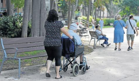 Varias personas mayores pasean por un parque. EP