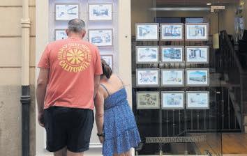 Dos personas observan los anuncios de viviendas en venta en una inmobiliaria. EP