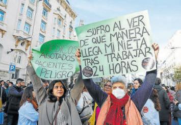 L. BELENGUER / E. OMEDES nacional@20minutos.es / @20m «La profesión médica por fin ha despertado y no vamos a volver a dormirnos. No lo hacemos solo por nosotros, también por los pacientes. No somos un cuerpo militar y nos tratan como si lo fuéramos». Con estas palabras se dirigió la secretaria general de Amyts, Ángela Hernández, a los 2.000 facultativos –según el sindicato madrileño, aunque la Policía Nacional rebaja la cifra a unos 600– que ayer se manifestaron en Madrid para protestar contra el borrador del Estatuto Marco que propone el departamento de Mónica García. Esta protesta escenificó el inicio de una huelga en toda España que arrancó ayer, en plena oleada de gripe, y que se prolongará hasta el viernes. Sin embargo, García no hará, a pesar de las movilizaciones, borrón y cuenta nueva con el texto, que incluye «coma por coma» todas las reivindicaciones médicas «que competen al ministerio», enfatizó la titular de Sanidad.