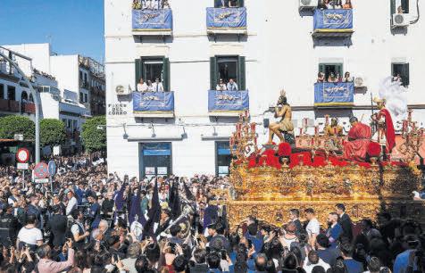 Un sol radiante, con cielos completamente despejados y un viento fresco, aunque también fuerte, que sirvió para aliviar el termómetro dieron ayer el pistoletazo de salida en Sevilla a una Semana Santa en la que, por el momento, no habrá que mirar mucho al cielo ni a las aplicaciones del móvil. Las buenas previsiones meteorológicas, que se mantienen para toda la semana, acertaron de lleno en un Domingo de Ramos pleno y con las calles abarrotadas por una multitud que no dudó en echarse a la calle con sus mejores galas para ver a las ocho hermandades de la jornada, que realizaron completa su estación de penitencia a la Catedral, sin que al cierre de esta edición (23.30 horas) se hubiera producido ninguna incidencia grave. Sí la hubo durante las vísperas, que también fueron completas en cuanto a las salidas procesionales, pero que se vieron empañadas por el macrobotellón que miles de jóvenes organizaron en la calle Ebro, en el barrio de Heliópolis, por donde discurría la hermandad de la Misión. Chicos y chicas con el cubata en mano pidiendo hielo a los nazarenos, gritando, haciéndose fotos junto a ellos o esparciendo cristales rotos a su paso. Una «falta de respeto» que podía haber derivado en algo más «serio», tal y como advirtió el hermano mayor de la corporación, Ángel Ruiz,