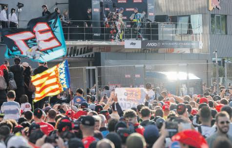 El podio con el que se cierra la temporada de MotoGP ante los miles de aficionados reunidos en Cheste. EFE
