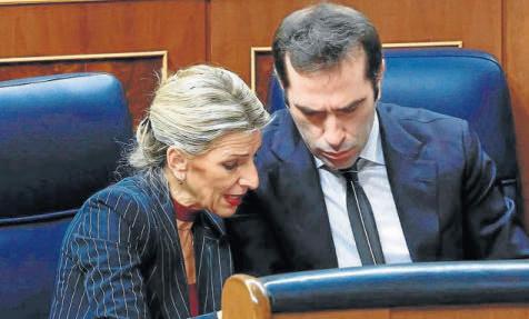 Yolanda Díaz y Carlos Cuerpo, en una imagen de archivo durante una sesión en el Congreso. EFE / ARCHIVO