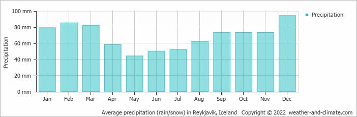 April receives the lowest precipitation with an average of 73mm. Meanwhile, December receives the highest precipitation with an average of 104mm.