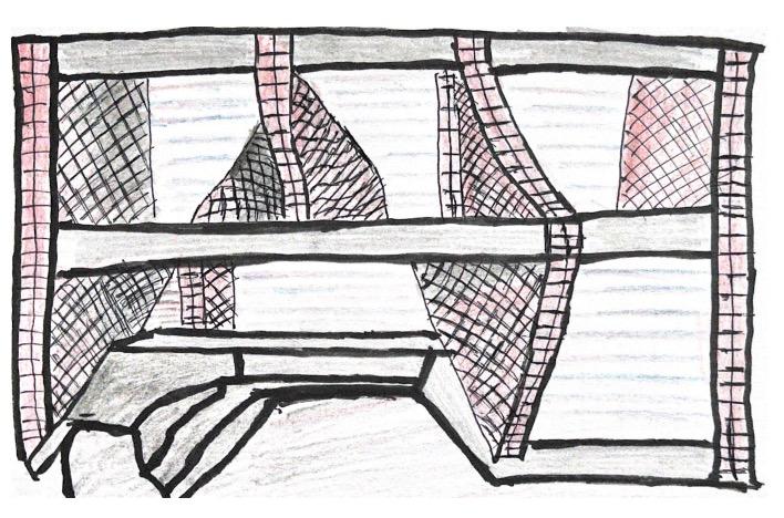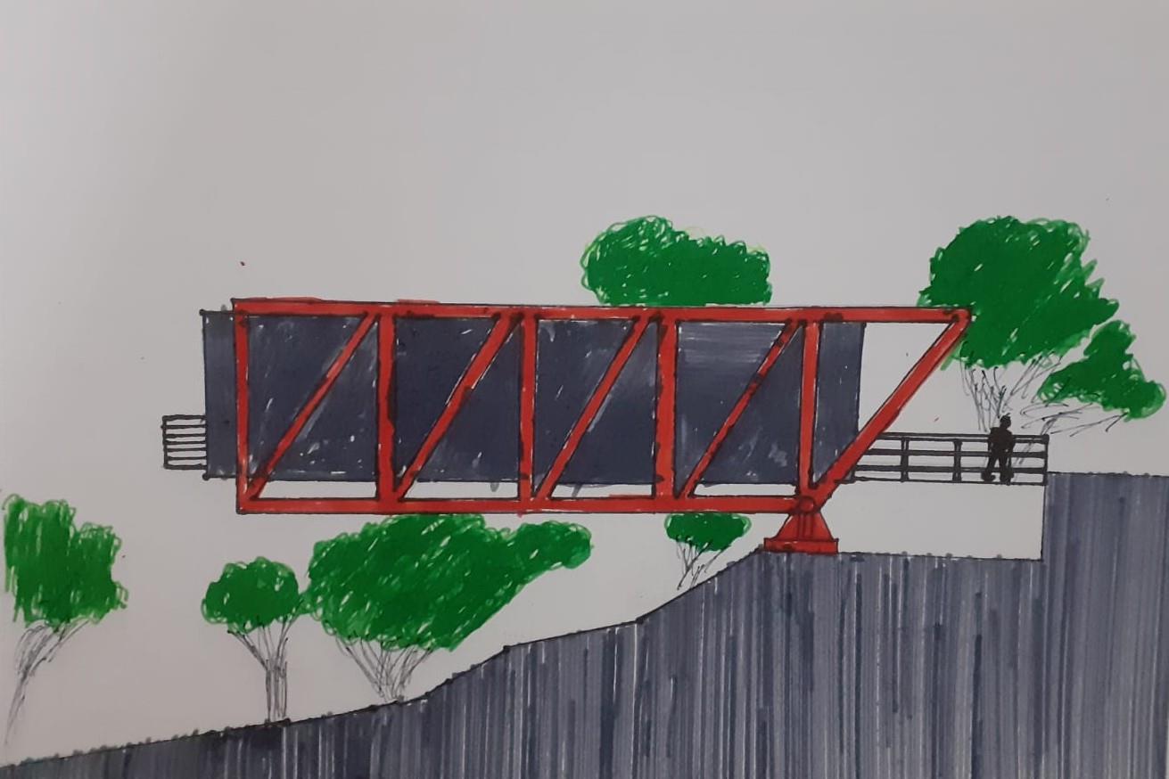 This hand drawn diagram shows the different forces the structure experiences.
