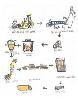 MELANYStainless steel is an iron alloy that contains iron and carbon. The raw material is melted together, this first step requires 8 to 12 hours of intense heat this will impact the environment negatively because of the carbon dioxide emissions