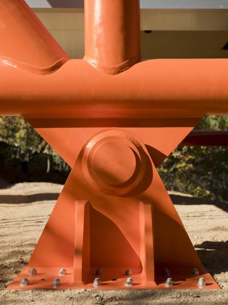 This steel structure was fabricated by Bysteel as a lightweight kit of parts that could be transported to the site and assembled by hand.