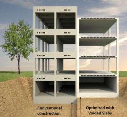 Avoidedconcreteslabisasystemthatremovesthenon-workingorexcess concretefromthestructuralslabandreplacesitwithvoidformers.Oneof themaindisadvantagesofconventionalsolidslabsistheirweightwhichnot onlyimposesastrainonitselfbutalsoputsahugeburdenonthebuilding andthefoundation.Thevoidscreatedwithinasolidslabsystemhelpto reducetheoverallweightoftheslabsystem.Thevoidedslabsystem providesahugeopportunitytoreducethecostandenvironmentalimpact withoutcompromisingtheperformanceofthestructure.Unnecessary concreteisremovedtomakevoidedslabs,thisreducestheweightofthe slabandimprovesthestructuralcapacityandspanlengthoftheslab.