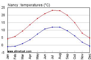 The best time to visit Nancy runs from mid May to mid September, since it is the warmest and sunniest period of the year. Sometimes, it can get hot in July and August, while in other circumstances, nights can be cool or even a little cold even in these months. The weather is pleasant with an average high of 24°C and an average low of 14°C between June to September.