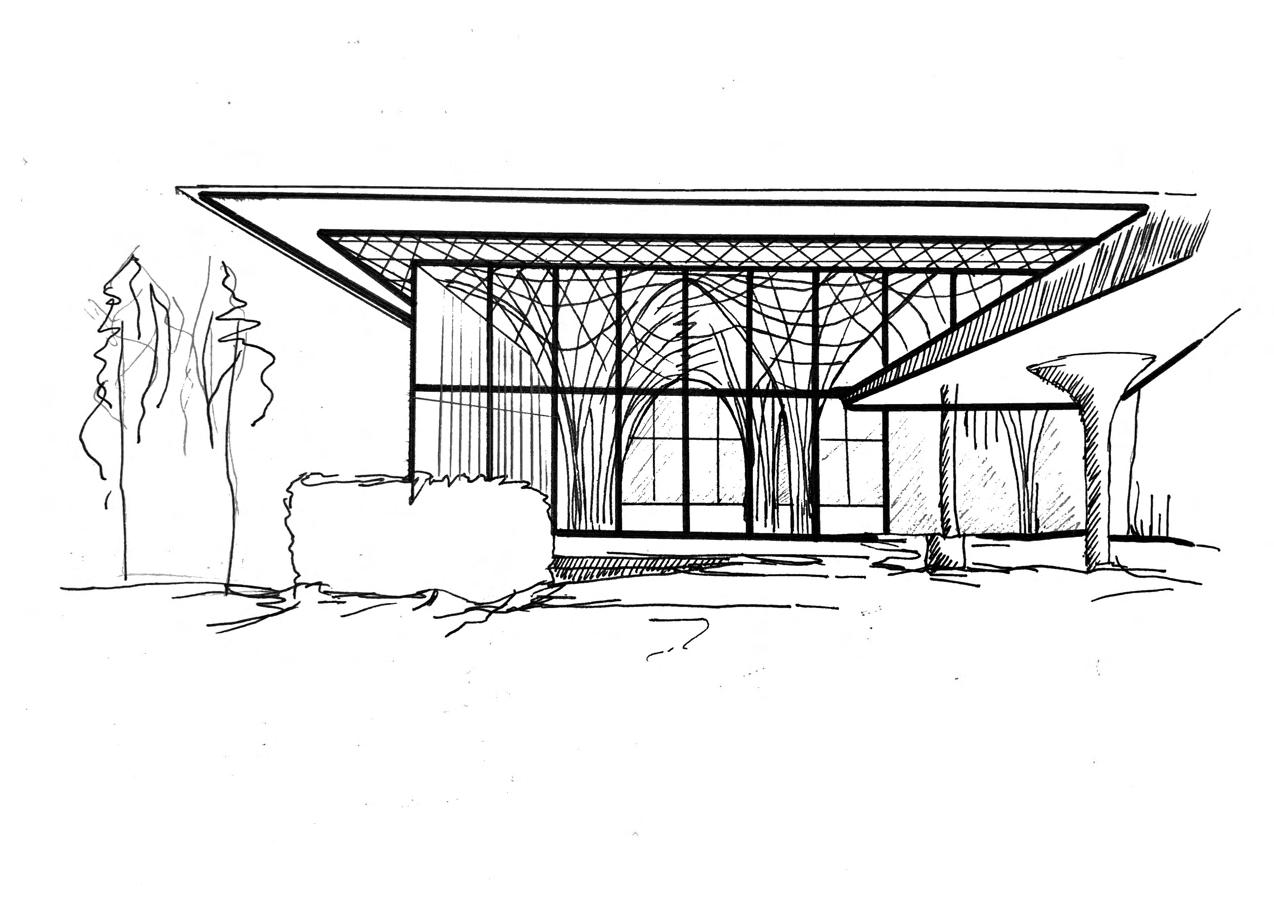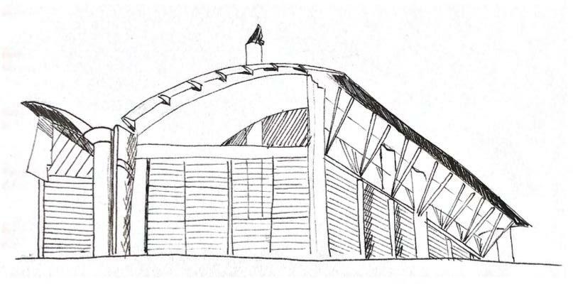 ARYA VAHIDI MELANY FERRAIUOLOMELANY FERRAIUOLOThe atrium of the club house is composed of timber columns and roof with glass windows that create an open space.