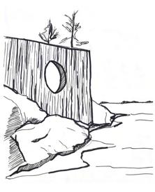 The foundation holds the building above ground level on any even terrain. They are placed along the edges and centre and take the entire load of the hut.