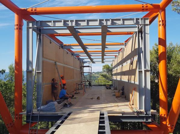 The prefabricated steel frame and supports by Bysteel are assembled on site and fixed in position.