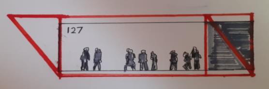 If each person takes up 10sft or 1m ^2 then the gallery can accommodate 127 people.