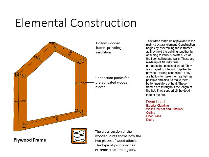 The construction of this hut is made simple by using prefabricated parts. These can be attached by hand and avoid relying on machines.