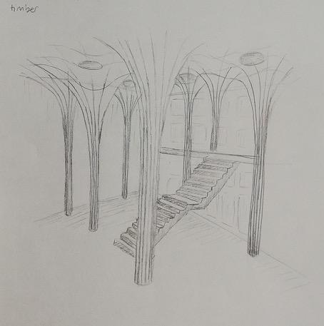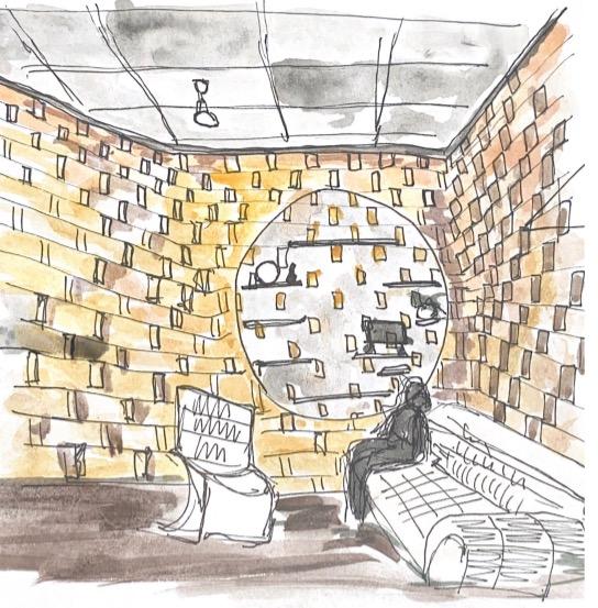 ANA SANCHEZ ARYA VAHIDIThe hexagon grid that forms the ceiling was inspired by the Korean traditional summertime pillow (aka bamboo wife). This feature of the building provides improved aesthetics whilst also serving as structural support from the columns.