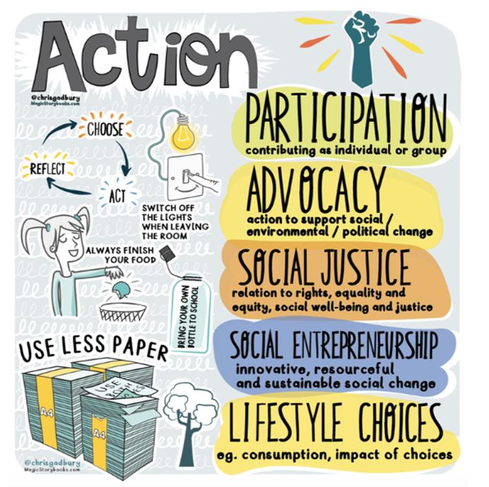 gina21Kclassroom-is ngtomakeadifferencein participation,advocacy, socialjustice,socialentrepreneurship,orlifestylechoices. Actioncanhelplearnersbecomemoreactive, responsible,andinternationallymindedlearnersand citizens.