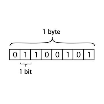 Equivale a un conjunto ordenado de 8 bits. Representa la cantidad mínima de datos que un sistema puede procesar a la vez. Un byte puede representar una letra, y un párrafo completo supera los 100 bytes. A partir de ahí, se establece una escala de medidas digitales:
