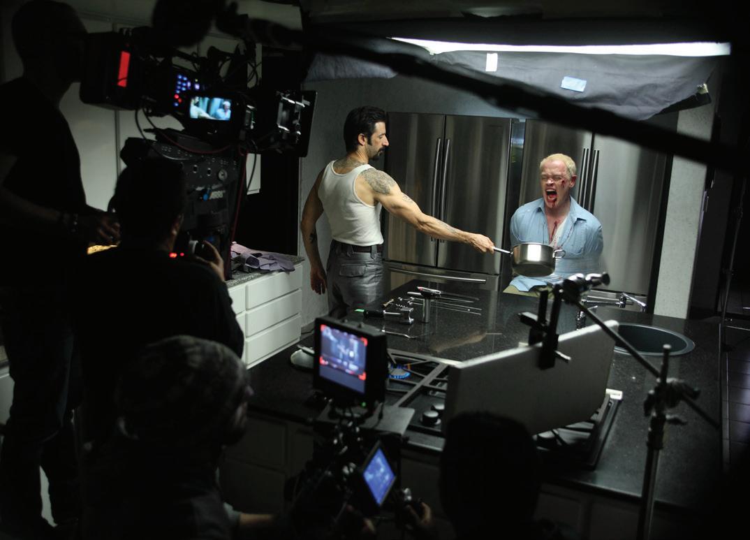 “‘There Are No Saints’, es una película cargada de acción. Tuve pláticas largas y entrenamientos junto a los stunts para generar conciencia de que los iba a seguir por el lugar con la cámara, el lente, alguno que otro cable, etc. Se tenían que acostumbrar a tenerme cerca y procurar mi seguridad y la del equipo”.