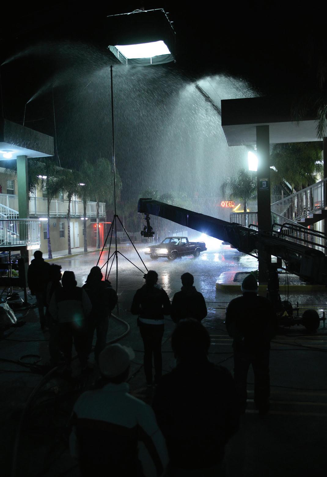 “Dentro de las secuencias más demandantes, tuvimos algunas escenas de acción en exteriores con lluvia y efectos especiales. Mi gaffer fue Cayo Ambris quien me ayudó mucho para crear estas escenas. Hizo cajas de luz con unos 20 Kinos -que en ese entonces me parecían muy innovadores-, que elevamos con una grúa sobre los actores y con las que podíamos crear una atmósfera interesante”.