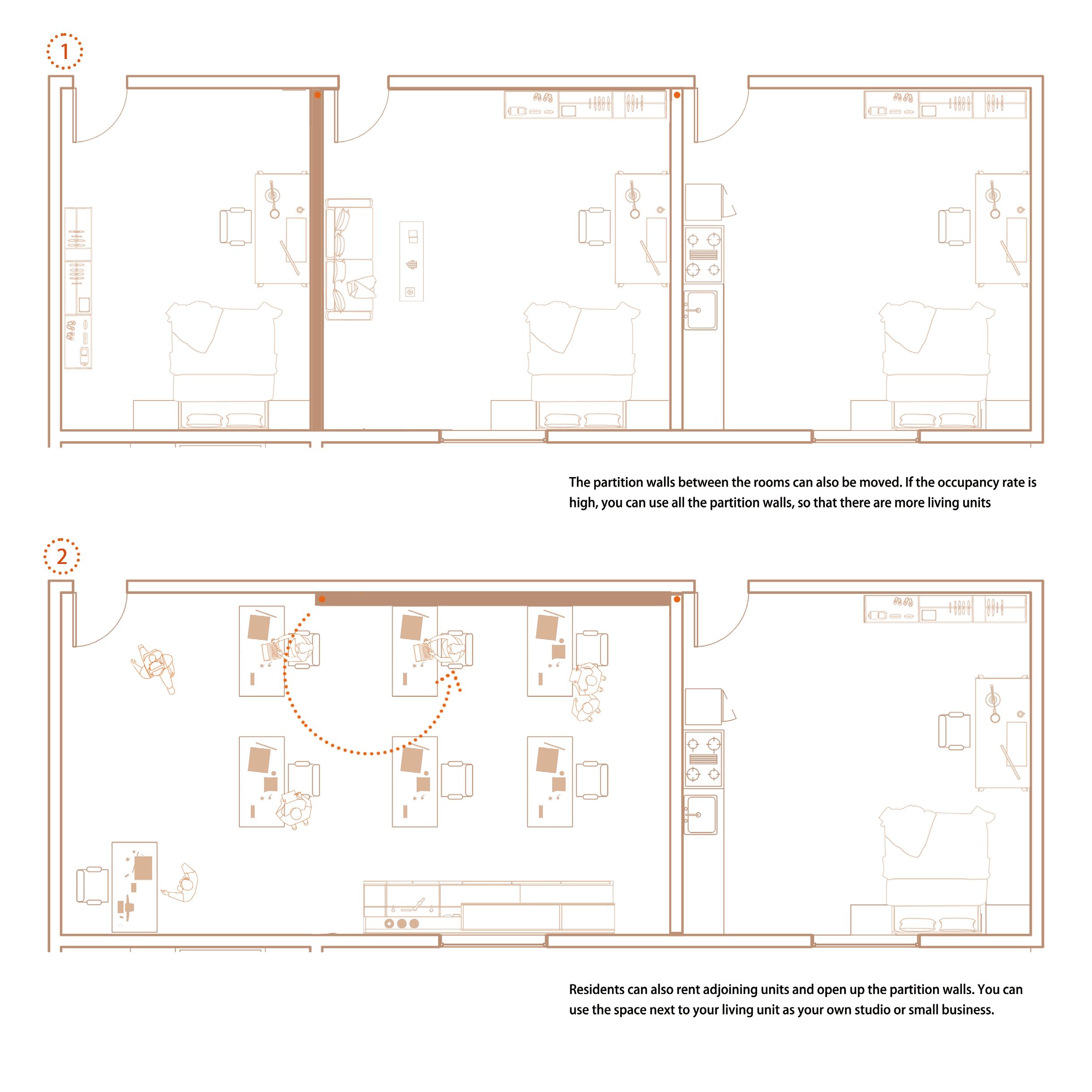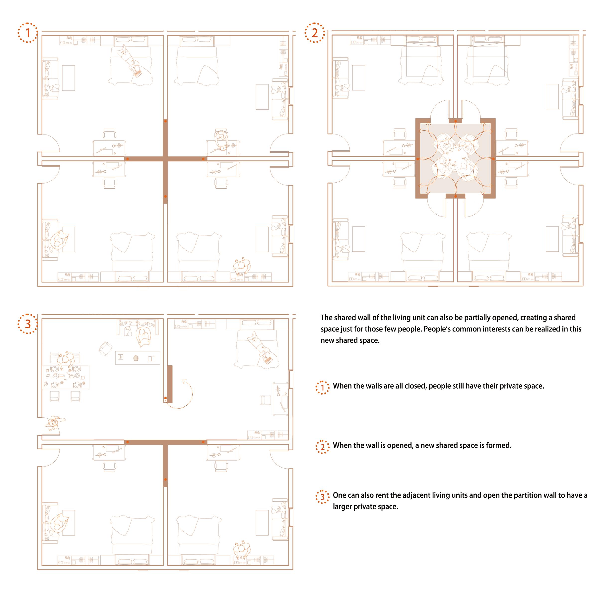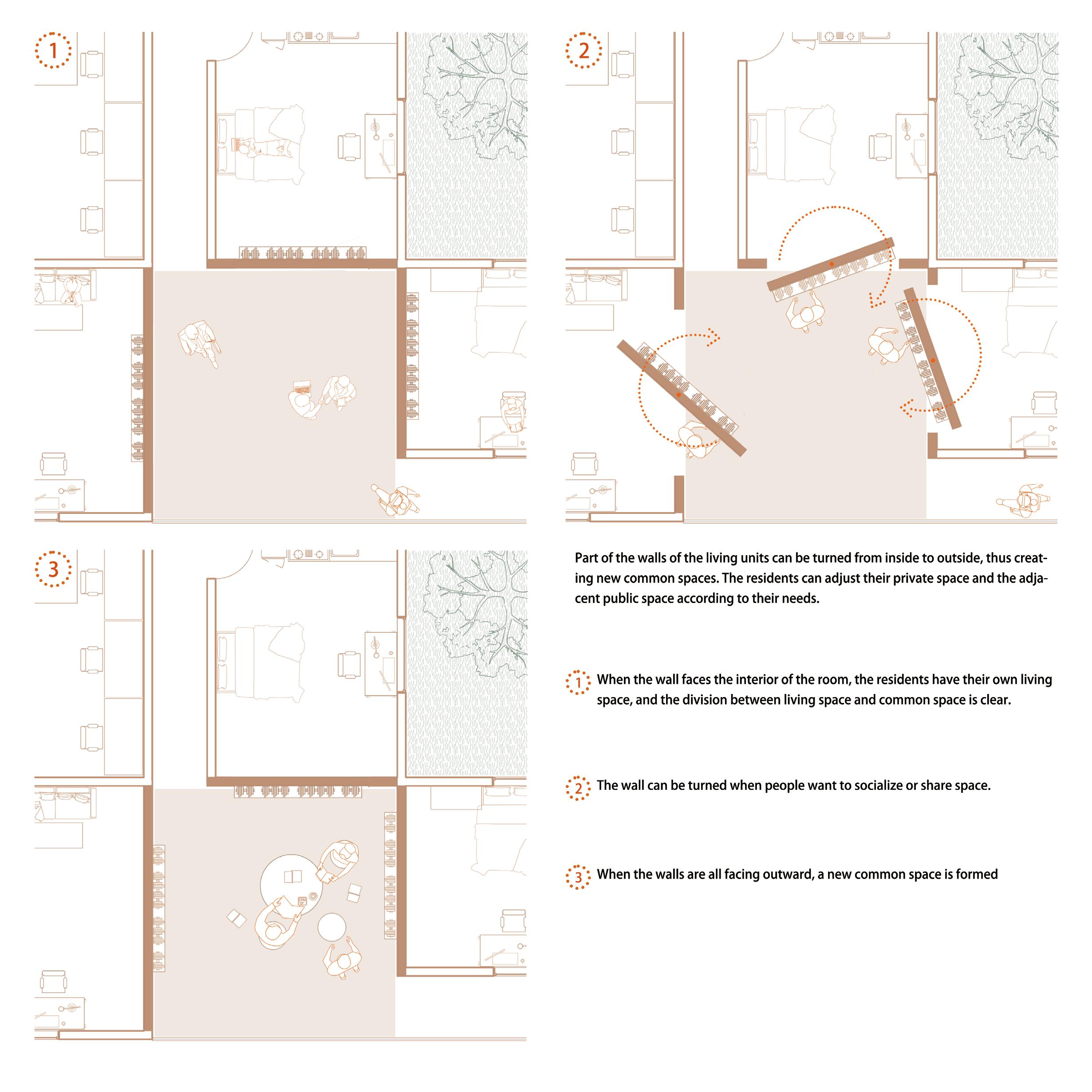 This project proposes a flexible methodology that can adapt to different environments and community locations. By identifying the fixed elements and their positions through a design sequence and logic which show in my drawings, the remaining space can be altered to meet the specific needs of the people.