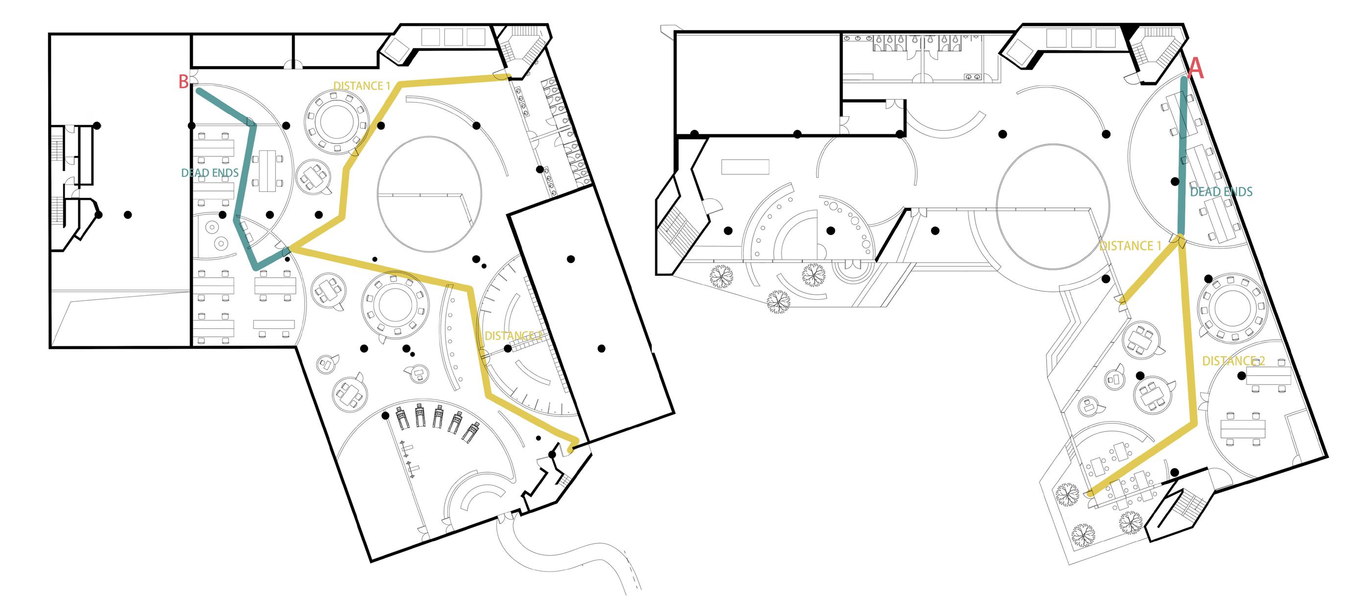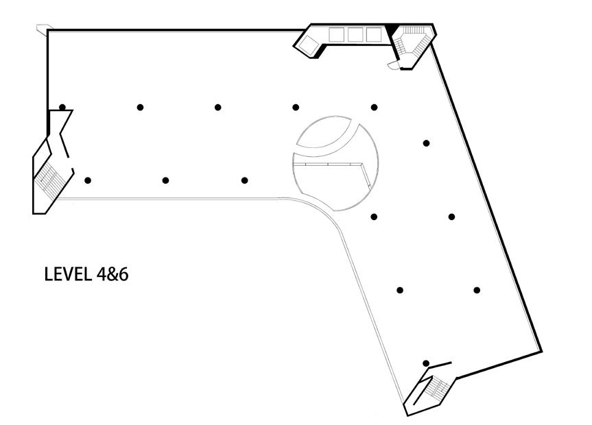 The second floor space is primarily intended for living units, and thus, the design does not require a significant consideration of the surrounding community. Therefore, the design process begins on the second floor. The main objective is to create a convenient living space for all residents. To achieve this, the location of the vertical circulation and common areas are determined first. Secondly, the location of the green space is decided to ensure that most of the living units are in proximity to it.