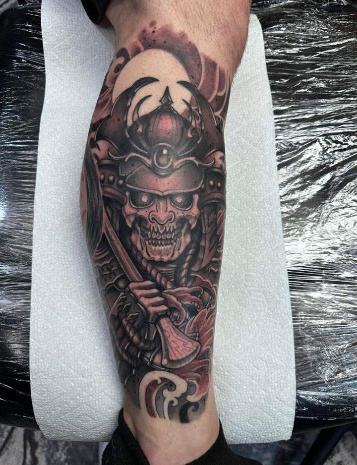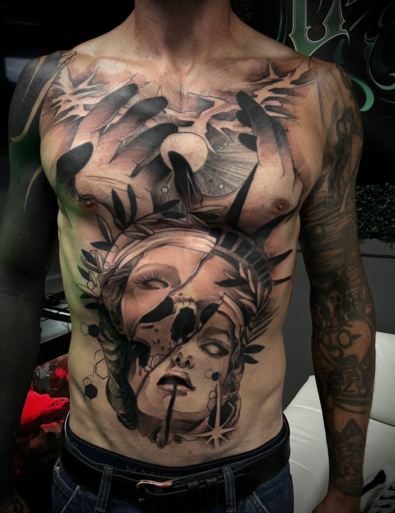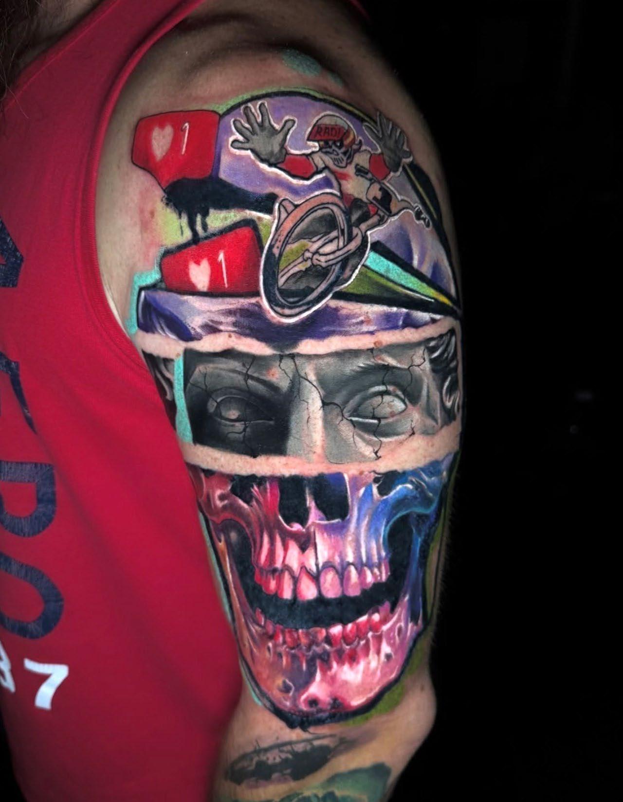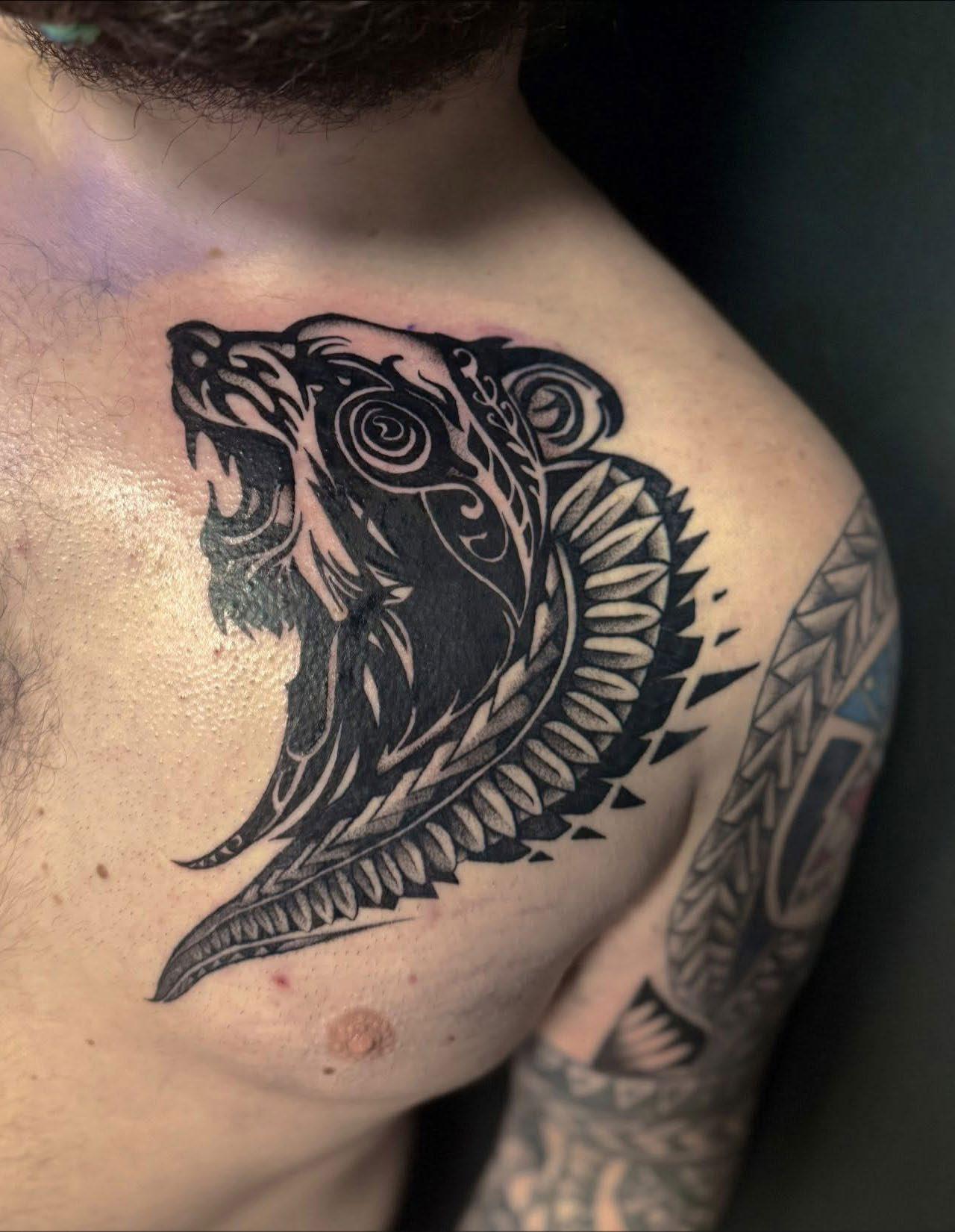 I was born and raised in Colorado. We started off incredibly broke, and struggled a lot. But as life progresses the struggle became less and less. I moved out at 17 and immediately started going down the wrong path. Drugs, gang banging, stupid ass shit. I lived to fight. It wasn’t until my early to mid 20’s that I found tattooing. It saved my life quite literally. I ended up fully sobering up, finding my amazing wife, having 3 kiddos, and fully immersing into tattooing and all that surrounded it. Now I live for the moments, while balancing dad/family life and the life of an artist and shop owner! I wouldn’t have it any other way!!