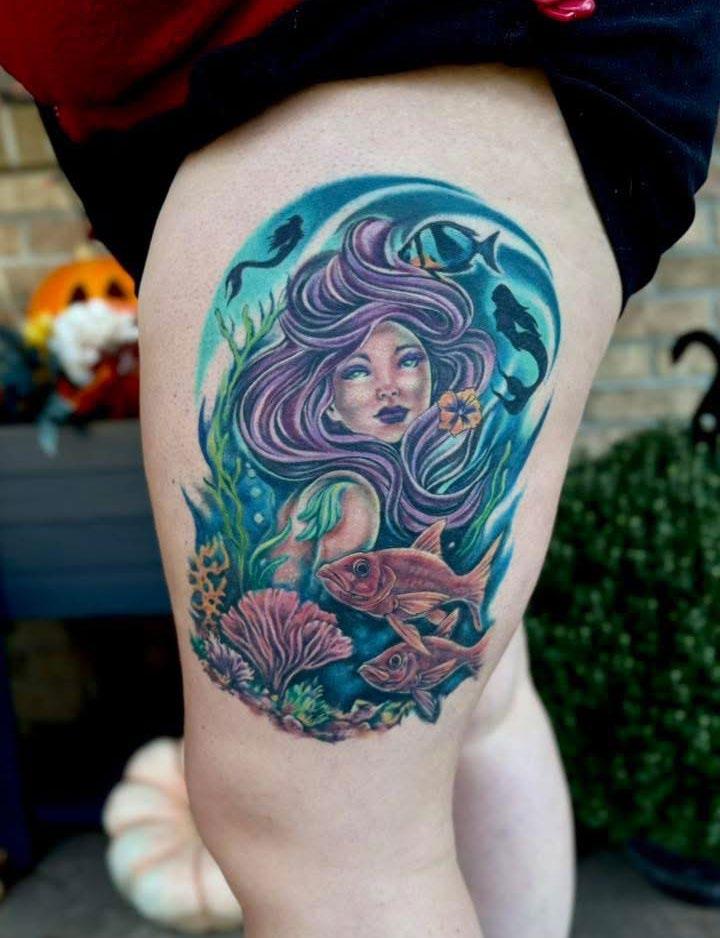 I always grew up doodling and making art. It was a release and escape. Even on school assignments I filled out all extra space on paperwork etc with my art doodles. About 18 years ago I had a friend and coworker see my talent and push me to start tattooing… at home ha! After a few years of kitchen magician work, I found myself pulled for more. Something more legitimate. So I found an apprenticeship. After my apprenticeship at a street shop I went and did an internship at a custom studio. And fell even more in love with the craft. Thanks to an amazing mentor and Friend, Chris Nami.