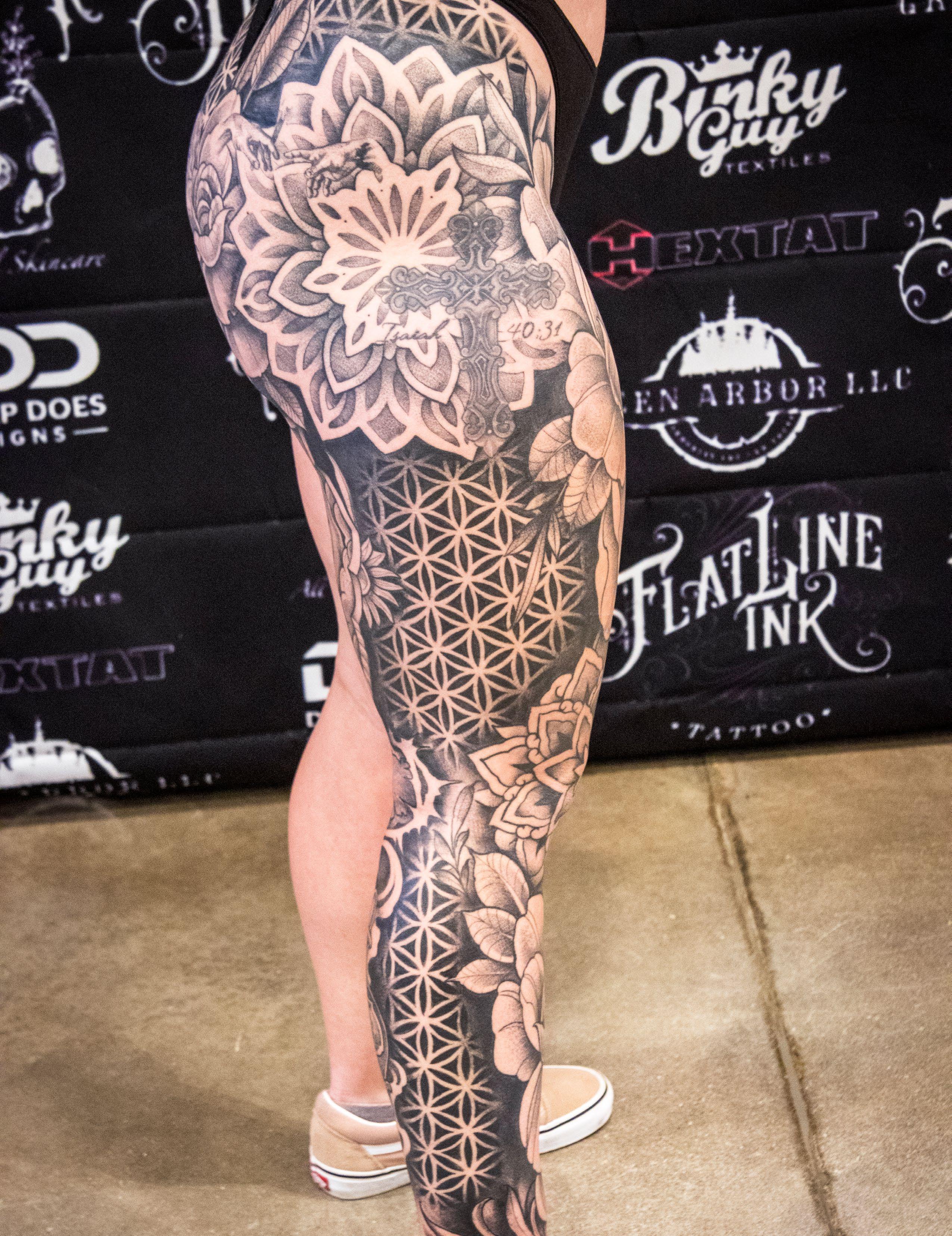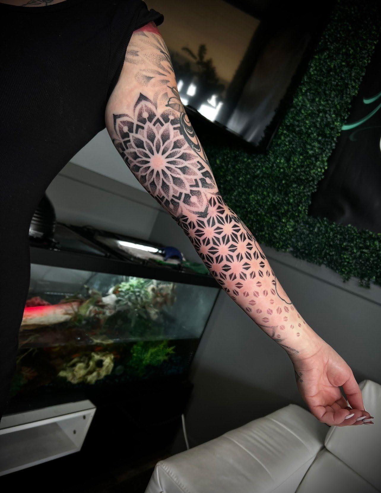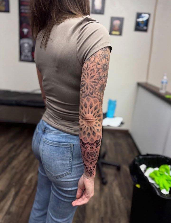 I specialize in large scale. Neo Trad and geometric are my favorites, but I do it all minus hyper realism :)