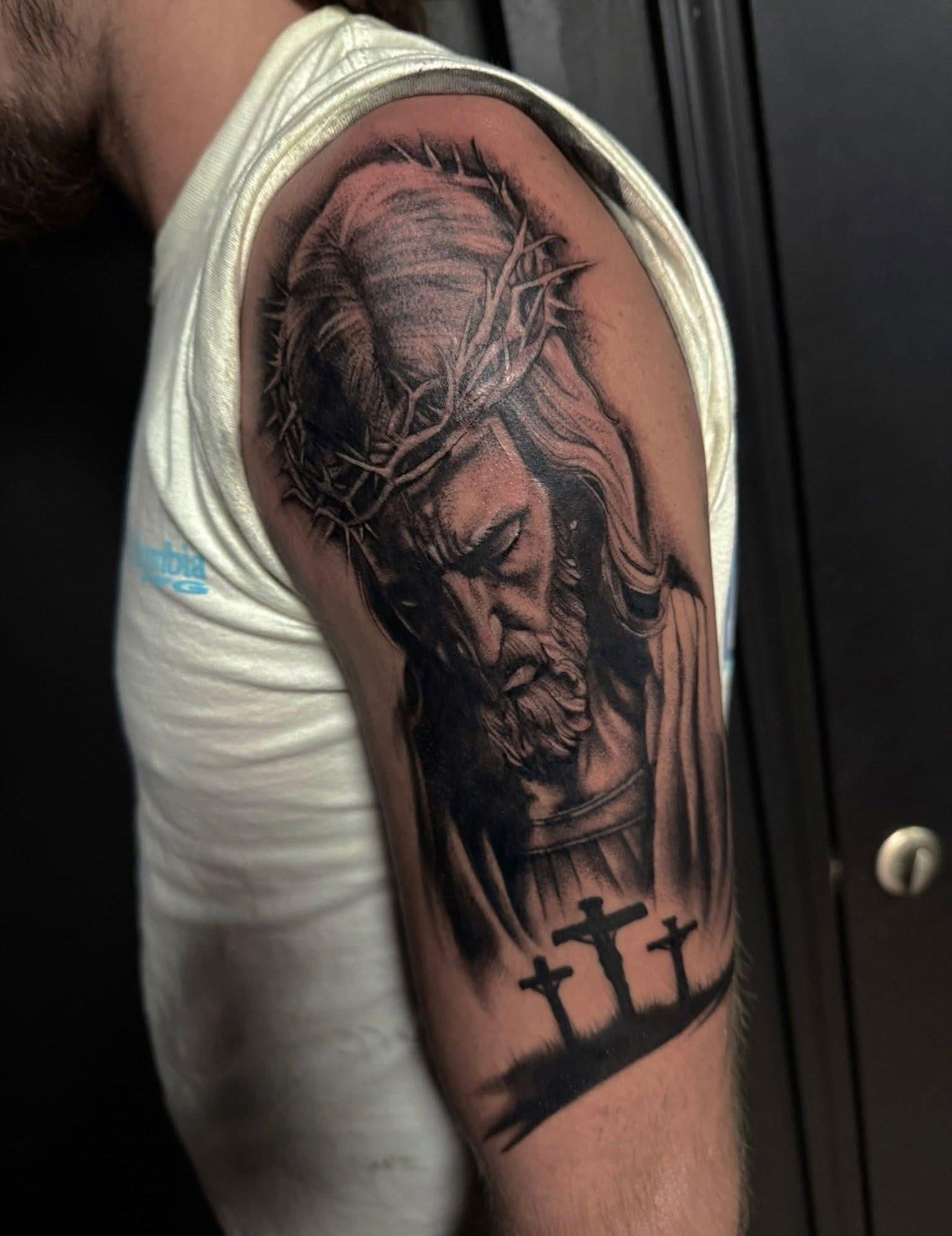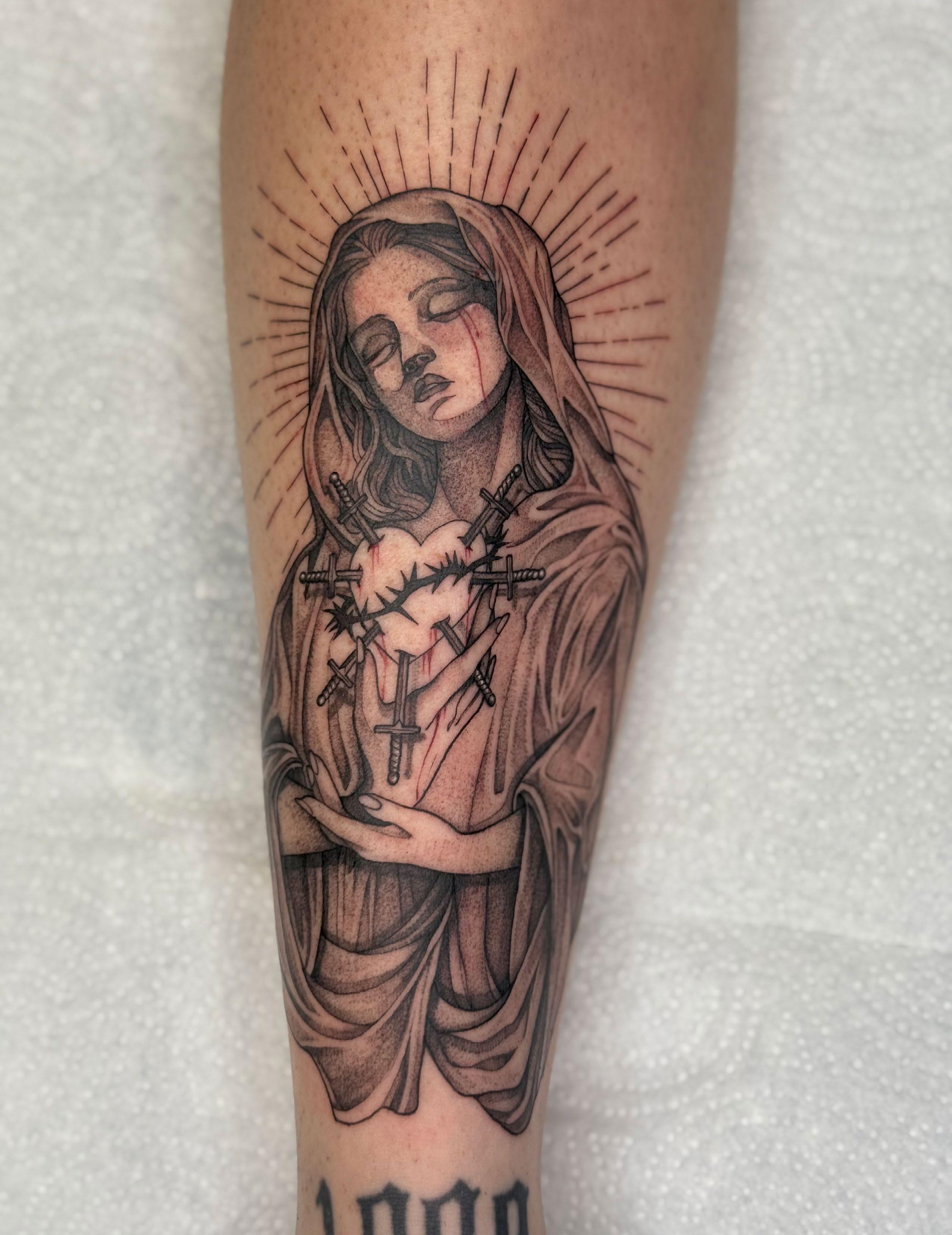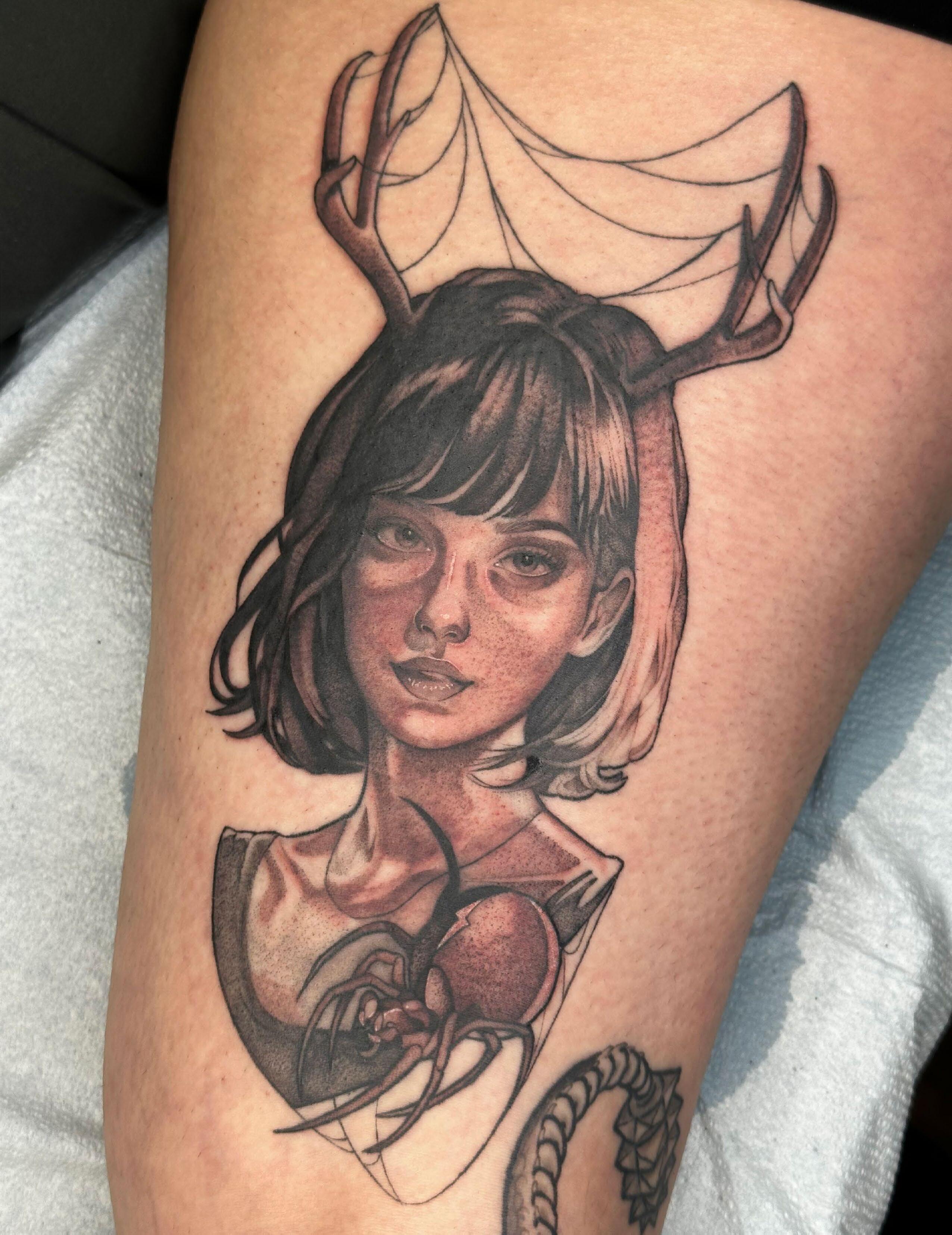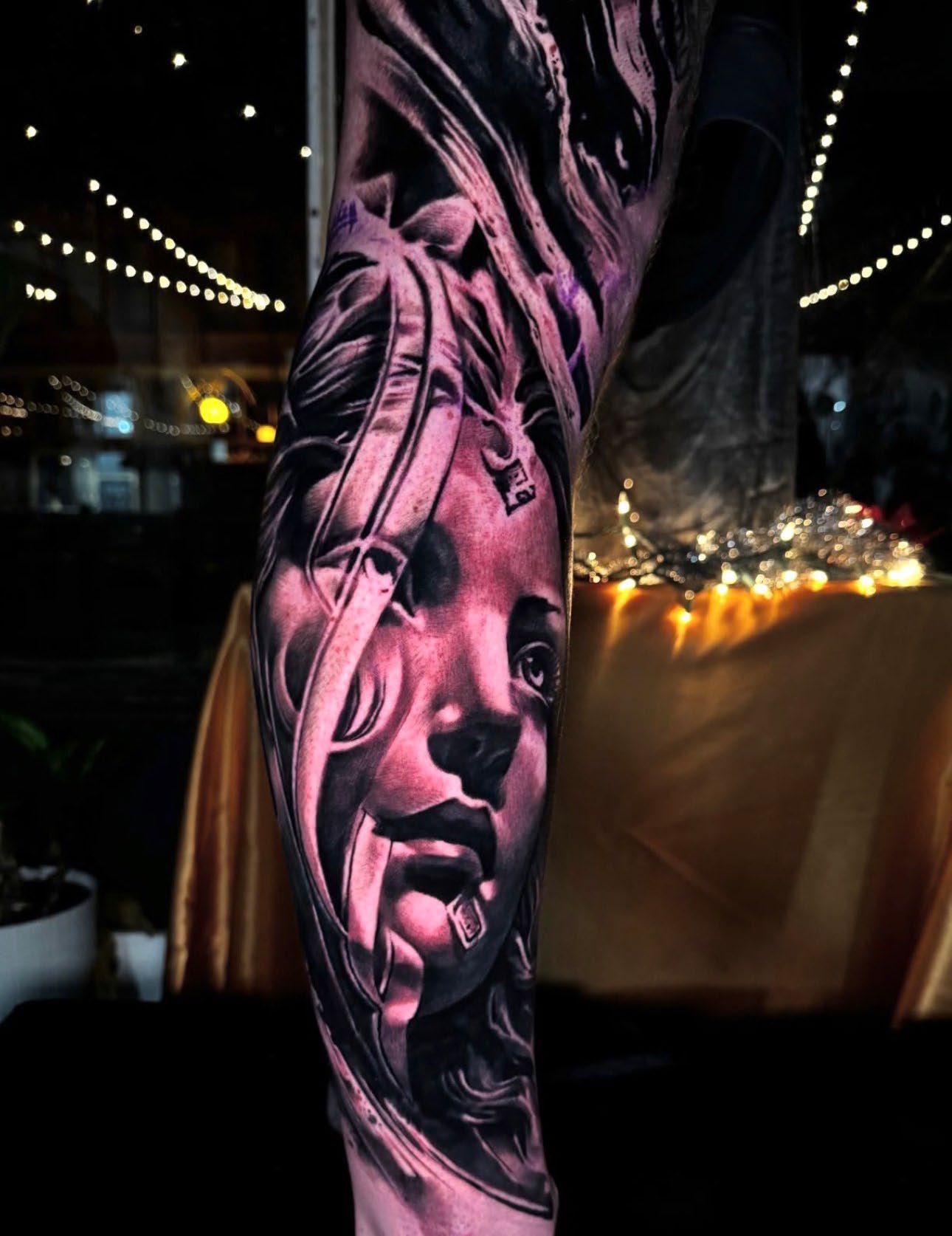 My favorite style to tattoo is black and grey realism. It’s what I’m most comfortable with and what feels the most natural to me. I’ve been a realism artist on paper my entire life, so transferring that skill onto skin felt like a natural evolution. I especially love doing portraits. Black and grey realism is timeless, and I love how much range and storytelling you can achieve within it. But that could also change in the future. I haven’t had a lot of time tattooing to explore and get comfortable with different styles.