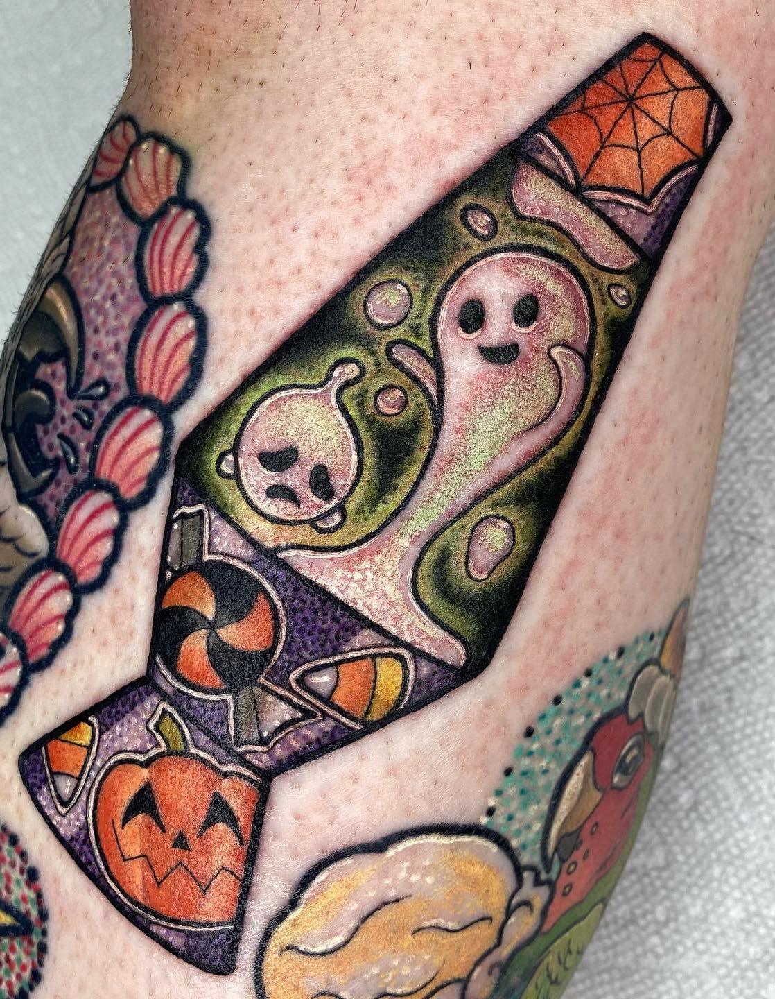 My teenage years were focused heavily on graffiti and comic art. When I drew for fun in my middle school and high school notebooks I would I would always draw in a newschool style. This was before I even knew what newschool was. Eventually I saw some newschool pieces in magazines and knew that’s how I wanted to tattoo. It was nice to know that my goofy fun drawings could actually be translated into tattoos.