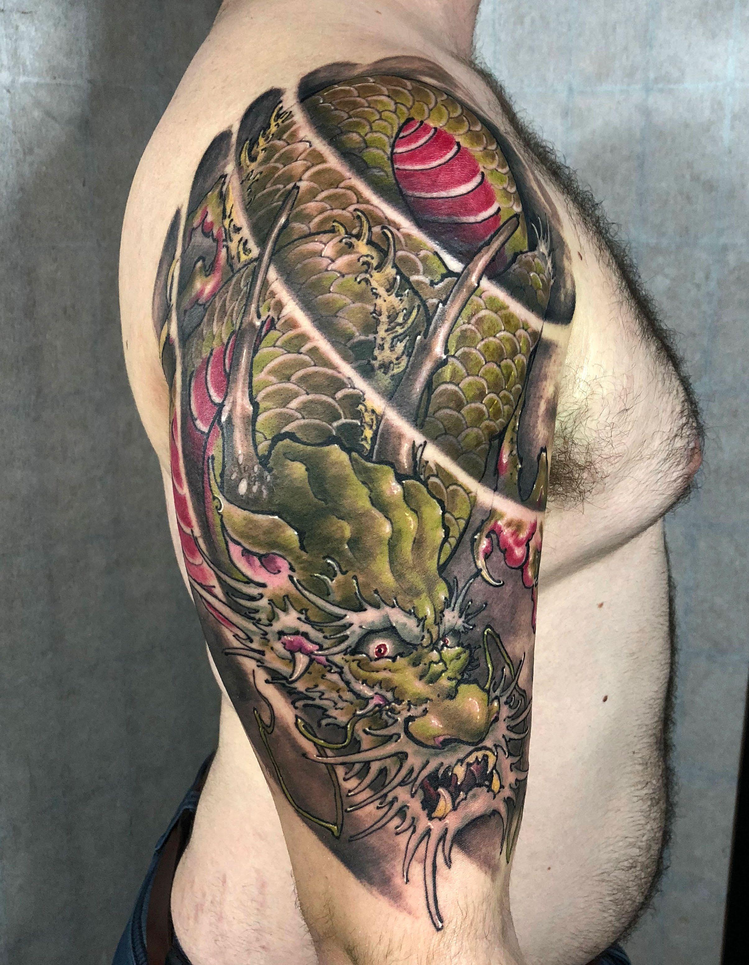 I really love tattooing many styles, when I started in the early/mid 90s, you had to be able to tattoo most anything that came in the door. But, my favorite is American traditional black and grey.