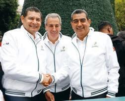 El gobernador Alejandro Armenta, el alcalde José Chedraui y el comisionado del INM, Sergio Céspedes, durante la puesta en marcha del operativo.