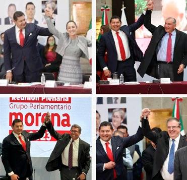 En el marco de la sesión plenaria de Morena, el presidente de la Mesa Directiva del Senado, Alejandro Armenta Mier aprovechó la oportunidad para alzar la mano a los tres aspirantes a la candidatura presidencial del 2024. En el encuentro entre morenistas, el legislador poblano aprovechó para fotografiarse con la mano levantada de Claudia Sheinbaum, jefa de gobierno de la Ciudad de México; Marcelo Ebrard, titular de Relaciones Exteriores; y Adán Augusto López, titular de Gobernación a nivel federal. /STAFF
