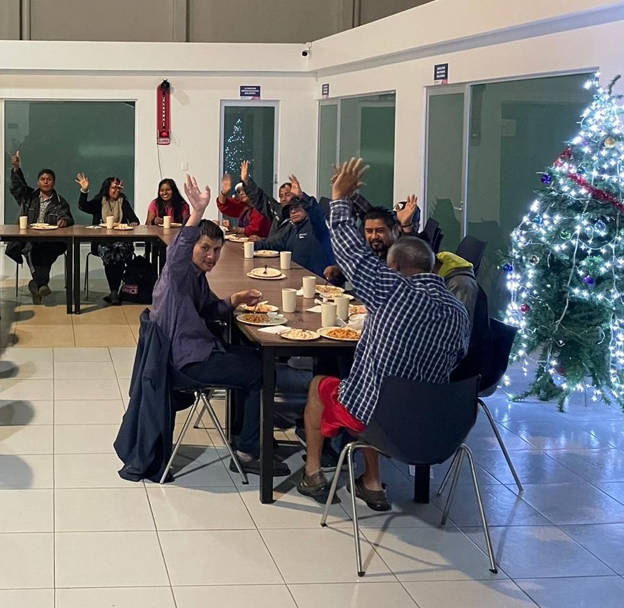 El Departamento del Dormitorio Municipal y Niñas, Niños y Adolescentes en Situación de Calle recibió a 20 personas a quienes se les ofreció una cena, en la que los chefs del Centro de Día, perteneciente a la Dirección Jurídica del SMDIF, usaron su creatividad para crear un menú con el mismo presupuesto que utilizan a diario, el cual incluyó espagueti rojo, pierna en salsa blanca, ensalada navideña, té y/o ponche. / STAFF