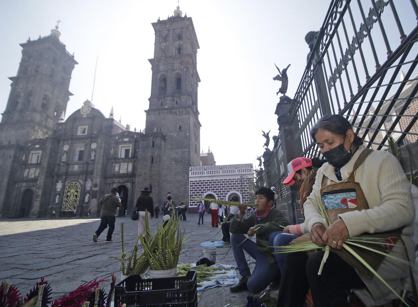FE. Alrededor de la Catedral Metropolitana, decenas de artesanos elaboraron las simbólicas palmas que cientos de poblanas y poblanos portaron durante las conmemoraciones religiosas que arrancaron la Semana Santa. METRÓPOLI P.6