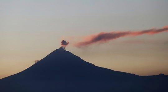 El volcán Popocatépetl mantuvo intensa actividad al atardecer desde la capital poblana