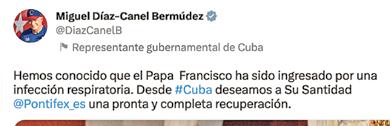 “Estoy conmovido por los numerosos mensajes que he recibido en estas horas; doy las gracias a todos por su cercanía y su oración”, tuiteó horas más tarde el pontífice argentino. El papa se encuentra internado en el décimo piso, reservado a los papas, del hospital Gemelli.