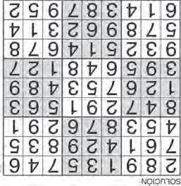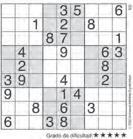 Complete el recuadro de tal manera que cada fila, columna y cuadro de 3x3 tengan los números del 1 al 9.