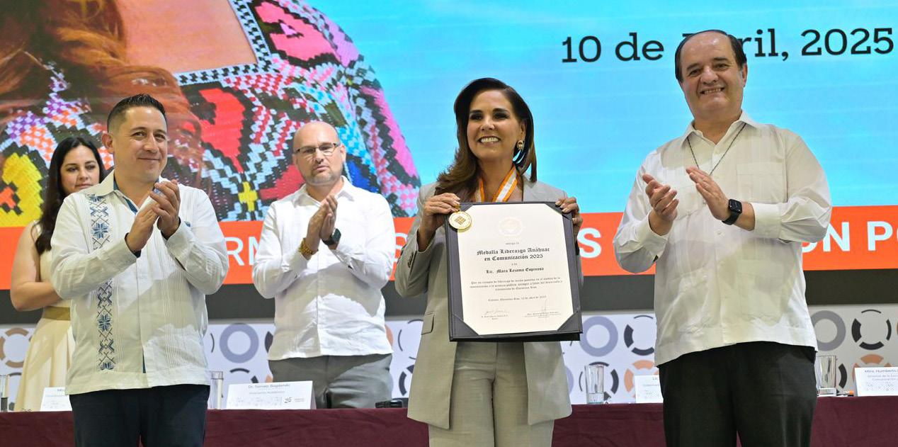 RECONOCIMIENTO. La gobernadora Mara Lezama Espinosa recibió la Medalla Liderazgo Anáhuac en Comunicación 2025, de la Universidad Anáhuac Cancún, representada por el padre Jesús Quirce Andrés, rector de la casa de estudios que cumple 25 años