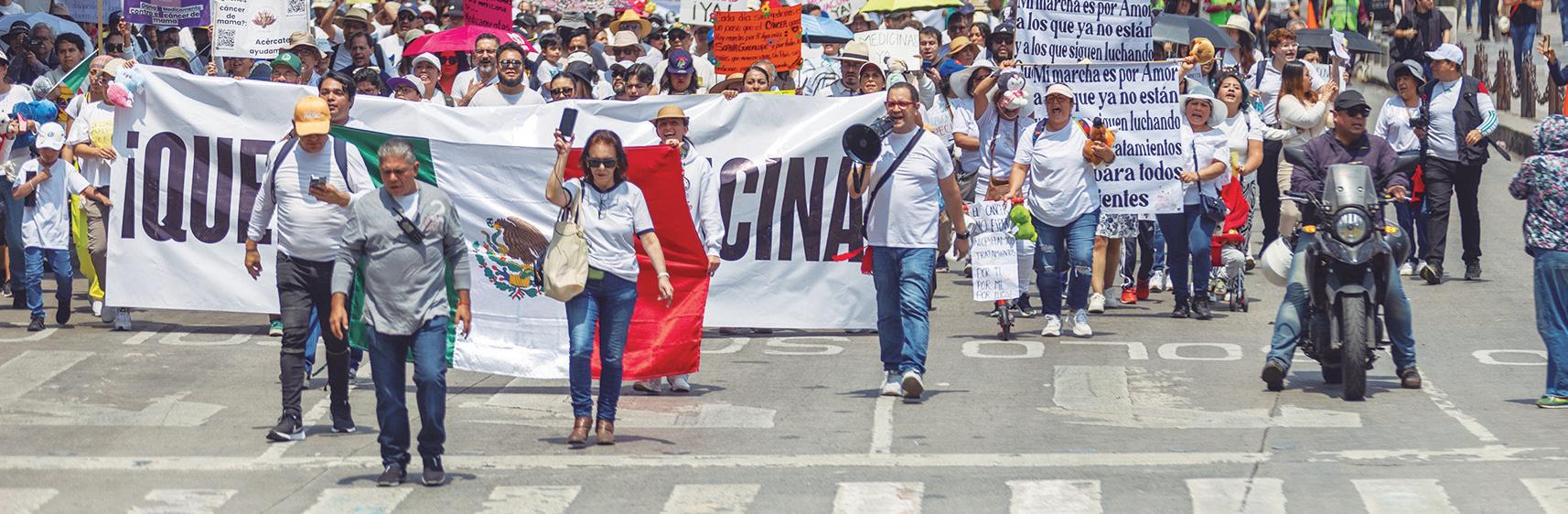 El sol caía sobre la glorieta del Ceviche cuando, poco antes de las 11:00 horas, comenzaron a llegar familias con pancartas, muñecos de peluche y el mismo grito en la garganta: “¡Queremos medicina!”.