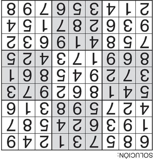 Complete el recuadro de tal manera que cada fila, columna y cuadro de 3x3 tengan los números del 1 al 9.