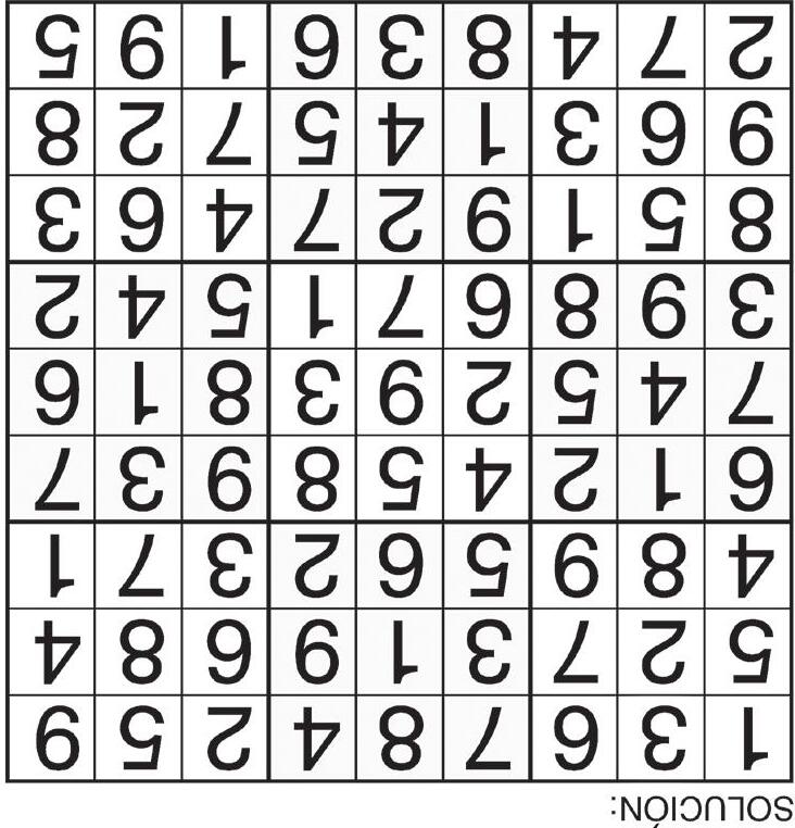 Complete el recuadro de tal manera que cada fila, columna y cuadro de 3x3 tengan los números del 1 al 9.