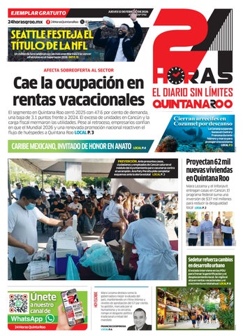 El segmento en Quintana Roo cerró 2025 con 47.6 por ciento de demanda, una baja de 3.1 puntos frente a 2024. El exceso de unidades en Cancún y la carga fiscal mermaron las utilidades. Pese al retroceso, empresarios confían en que el Mundial 2026 y una renovada promoción nacional reactiven el flujo de huéspedes a Quintana Roo LOCAL P. 3