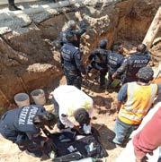 de aproximadamente tres metros de profundidad sorprendió a dos trabajadores que realizaban excavaciones, dejándolos sepultados bajo piedras y tierra.