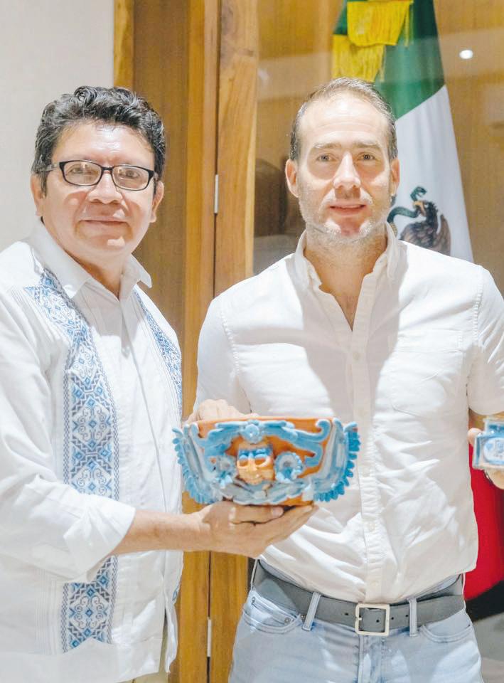 El presidente municipal de Tulum, Diego Castañón Trejo, sostuvo un encuentro con el escultor y artista yucateco Luis May, reconocido por rescatar la ancestral técnica para obtener el legendario azul maya. Originario de Dzán, Yucatán, y residente en Cobá, Quintana Roo, Luis May dedicó años a investigar y redescubrir la fórmula del pigmento que siglos atrás adornó los murales de Tulum, Cobá, Chichén Itzá y Bonampak. Su técnica artesanal combina plantas, resinas y minerales locales, y fue desarrollada tras entrevistas con ancianos mayas y un proceso extenso de prueba y error.