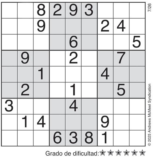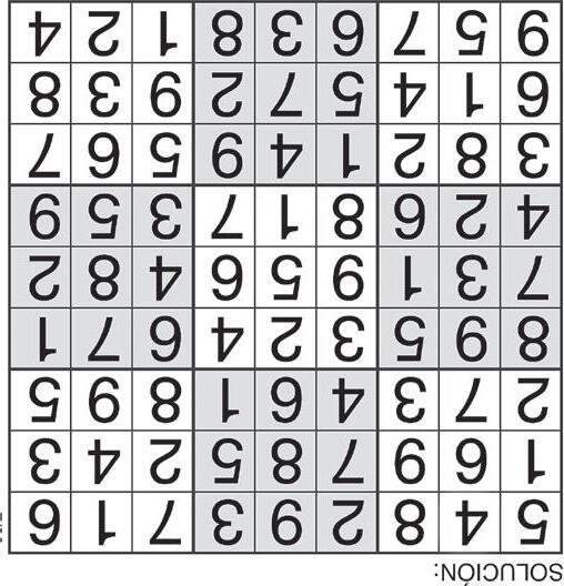 Complete el recuadro de tal manera que cada fila, columna y cuadro de 3x3 tengan los números del 1 al 9.